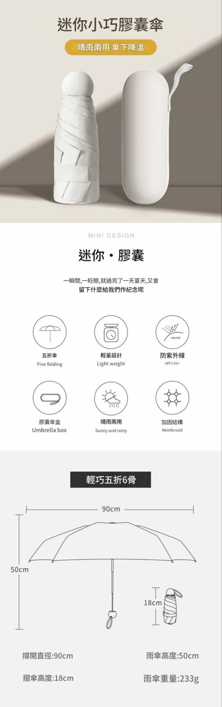 迷你體積 × UPF50+防曬 × 晴雨兩用