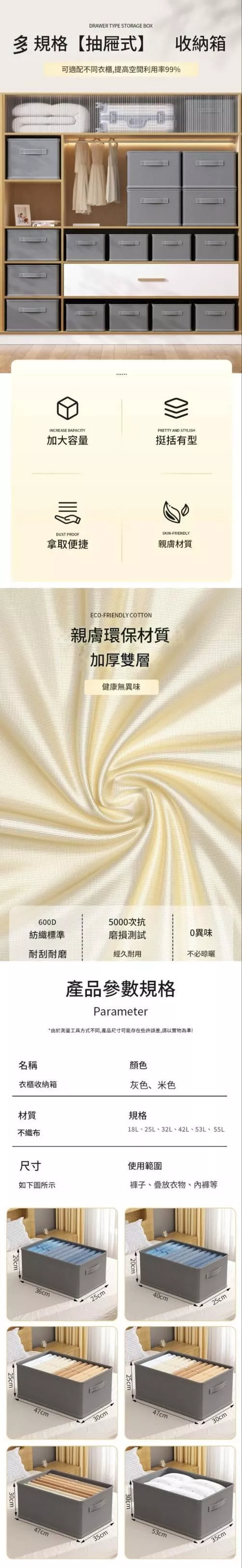 ✔ 大容量多尺寸|從內衣到厚毛衣通通收得下