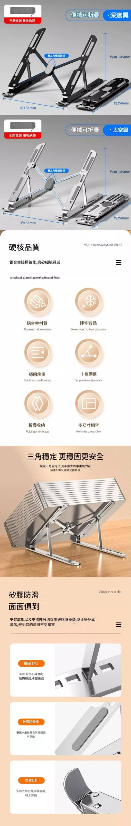 折疊式筆電 / 平板多功能支架|輕巧便攜 × 十檔調整 × 全金屬穩固支撐