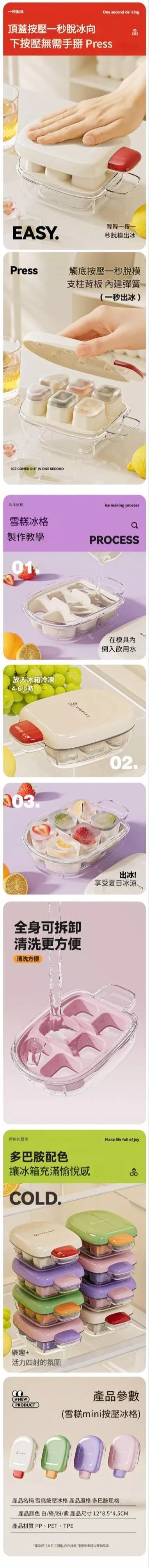 - 一鍵按壓脫模:輕鬆取冰不費力,不傷手、不變形