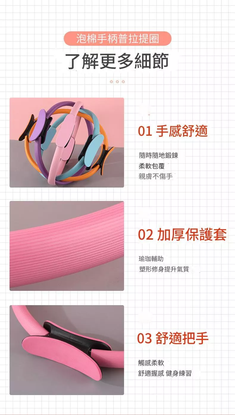 這款 普拉提斯圈(瑜珈伸展圈) 採用 ABS 材質 製作,結構穩定、彈性佳,能提供適度阻力,幫助訓練核心肌群與身體線條。